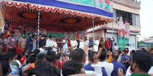 The match was a unique event to pay tribute to the memory of the late Arafat Rahman Koko and create harmony among local football fans. In this exciting match, Matlab North Upazila team blanked Matlab South Upazila team by 2-0 goals to win the match.