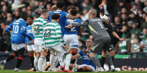 Celtic were lucky not to also be reduced to 10 men before half-time when Auston Trusty caught Rangers goalkeeper Jack Butland on the head.